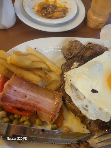 Read moreFuimos con mi esposa a conocer el lugar, buscando por Google un restaurante de carnes rojas. Pedimos 2 bifes de chorizo a la criolla. Consultamos de que se trataba a la criolla y nos.dijo el mozo qué era con guarnición de fritas arvejas morrones salteados y panceta. Así que decimos pedir uno para cada uno. Y al llegar lo pedido.... nos llevamos la primer sorpresa .... no era bife chorizo...eran láminas de bife de chorizo...los dos platos!!!! Y la fritas la guarnición de fritas eran literalmente 8 papas fritas en cada plato, hay Señor!!! Una estafa tremenda.... ademas incluia jajaja 10 arvejas, 2 tiritas de morroncitos rojos y un pedacito.de panceta. ESTAFADORES!!!!!!!! 8 PAPAS FRITAS DEJO LA.FOTO !!!! NO VAYAS ES MALISIMO. AHHH PARA........ NOS GASTAMOS $56800 CON LAS DOS AGUAS Q PEDIMOS. POR 8 PAPAS FRITAS Y 10.ARVEJAS ARRIBA DE UNA FETA DE BIFE DE CHORIZO. Pd: un huevo pedorro arriba...