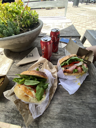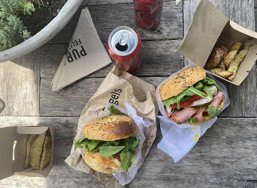 Llamamos a la moza para hacer el pedido una vez ya sentados en una mesa y nos hizo señas como que nos acerquemos a la caja para pedir… dijimos raro pero bueno pedimos y pagamos ahi. Los bagels nos los trajeron para take away, un malentendido. Pedimos el Bagel Cali y el Bagel de Pastron B&B, los comimos en nuestra mesa de todas maneras. No estaban calientes a pesar de estar recien hechos, el pan sin tostar, faltaba crocancia… los ingredientes estan bien pero no son nada del otro mundo. Hay variedad de opciones de bagels con ingredientes interesantes pero tampoco que son de calidad superior. Diria que el lugar esta bien más que nada para brunchear cada tanto… nuestra experiencia no fue la mejor pero esperamos que alguna otra futura en este lugar...