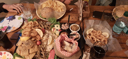 Read moreCervecería con ambiente muy agradable. Tiene dos pisos, puede escoger entre sentarse en una "terracitas" abajo a la entrada, arriba en dos salones cerrados y otra pequeña terraza con una mesita arriba. Mientras espera que te atiendan y la comida se puede jugar diversos juegos de mesa que se encuentran en el piso de arriba, entre ellos el Uno, el Jenga, cartas, la generala... Está ambientado bonito, con tablas de surf, juegos de Jenga grandes, etc. La atención rápida y amable. La comida rica y abundante, especialmente la porción de papas, todo lo que nos sobró la chica nos ofreció amablemente envolverlo y que lo lleváramos. Se puede comer: pizzas (todas individuales porciones), papas de diversos tipos (nosotros comimos con cheddar, panceta y verdeo), hamburguesas (las que vimos eran bien grandes), pastas, sándwich, entradas, etc). Además cuenta con variedad de cervezas y...