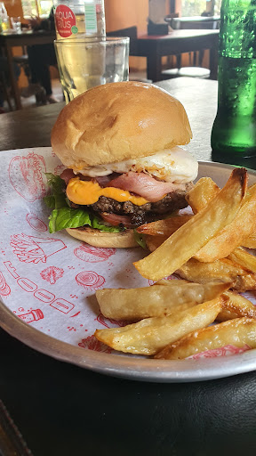 Comida: Pedimos hamburguesas, el menu es chico, las hamburguesas claramente destacan, estaban buenas la verdad, la comida me gusto. Lo que puedo llegar a mencionar aca es que tardaron muchisimo y si, estaban recien hechas, se notaba, pero tardar mas de una hora para sacar 3 hamburguesas me parece mucho, sobre todo por que eramos nosotros y 4 meses mas en ese momento. Necesitan mejorar el sistema, tienen un menu muy acotado y sin embargo tardan mucho en sacar la comida, la nuestra y la de todas las mesas.