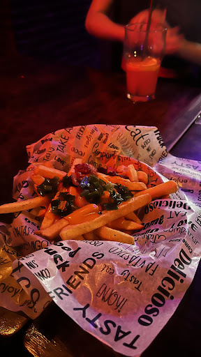 Read moreEl lugar está bien ambientado y ubicado en pleno centro de Adrogué. La música es buena pero siempre llevan a los mismos DJs cada finde, tendría que haber más variedad. Por otro lado, la comida es buena. Me pedí una hamburguesa doble cheesebacon y estaba riquisima, pero son algo mezquinos con las papas fritas (muy poca cantidad). Lo que si no pidan la tabla de frituras. Normalmente se basa en "masa y queso", pero de diferentes formas. Lo más rico de esa tabla son los bastones de muzzarella. Podrían por lo menos poner unas empanadas fritas de carne (de copetín,...