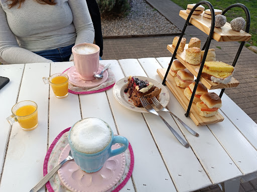Read moreExcelente en todos los sentidos! La comida es excepcional; una carta con amplia variedad, todo casero. Tienen milkshakes, frapuccinos, limonadas y jugos de frutas u orgánicos. Disponen de un menú variado para celiacos. Tienen alimentos y bebidas aptos para vegetarianos y veganos. Tienen excelentes promos para 2 personas o compartir a muy buen precio y con variedad de tortas. Todos los platos y bebidas son abundantes y la relación precio - calidad esta más que bien. El lugar es precioso, excelente la decoración y el cuidado del jardín. En el interior es una casa antigua y en el exterior un parque donde podes merendar bajo la sombra. Ideal para tomarse fotos! El ambiente es tranquilo, para nada ruidoso, música bajita y tranquila. La atención es excelente, cuentan con varias meseras muy atentas; te ayudan a elegir de la carta y te traen los pedidos rápido. En la foto se puede ver un frappé bombón + brownie, un sandwich de pan de campo solo de jamón y 2 gaseosa y una ‘promo verano’ ($450) para 2 personas: trae 3 porciones de torta, dos scons rellenos con jyq, dos porciones de budín de naranja y bebida a elección (en este caso Frappuccinos). Un lugar imperdible!! La verdad estoy esperando con ansias volver. Si te gusta lo dulce, no podes irte sin probar la tarta de banana con dulce de leche. PD: se pueden hacer las reservas por facebook pero siempre...
