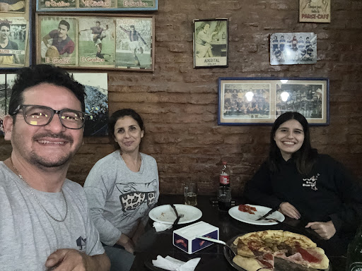 Read moreEs un lugar interesante. Bien ambientado. Con un cierto aire a bodegón, se aprecian en sus paredes fotos antiguas y banderines de fútbol. Un amplio mostrador en L, deja ver al fondo el imponente horno a leña encendido. La pizza es a la piedra. Yo pasé sólo para conocer, y pedí dos porciones. Venden al corte, pero en el horario que yo fui, por la tarde, sólo tenían de mozzarella para ese estilo. Supongo que en la noche debe haber más variedad. Muy buena la pizza. Es...