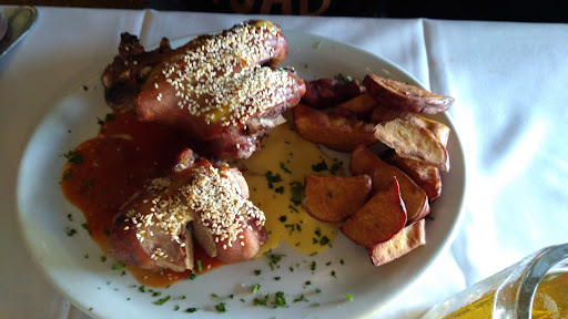 Recomendable! Fuimos con mi novia un sábado al medio día y nos gustó mucho! Los precios son de razonables a caros. No es un lugar barato. Sin embargo la relación precio/calidad está muy bien. Pidiendo un plato principal, te da derecho a servirte en un mini-buffet de ensaladas, libre (se puede repetir a voluntad). Esto yo lo tomo como incluido en el cubierto que cobran ($65). Mi novia pidió uno de los platos del día, codillo de cerdo con batatas. Yo ordené unas supremas de pollo 'Viejo Cañón' rellenas y cubiertas con panceta (plato propio del lugar). Todo estuvo muy rico y sabroso, la comida no tarda tanto en llegar y te da tiempo de servirte ensalada. Para terminar de postre pedimos un volcancito de chocolate. Estuvo OK pero no perfecto. Primero ya vino 'explotado', es decir, la gracia del volcán es romperlo y que haga erupción de chocolate. Eso no pasó. Segundo le faltaba calor, estaba tibio cuando en general tiene estar bastante más caliente. De sabor y presentación estaba bien. El lugar tiene una excelente cava de vinos con muy buena oferta. No hay tanta oferta en cerveza. El mozo que nos atendió se llama Guillermo y realmente una atención excelente! Detalle de la cuenta: $130 cubiertos (2x $65) $220 cerveza de 500cc (2x $110) S290 Suprema viejo cañón $550 Codillo de cerdo $137 Volcancito de Chocolate $1327. Total sin propina. Fecha 30/03/2019 Si queres ir a un buen lugar con tu pareja o un par de amigos es una...