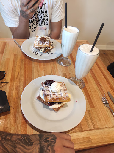 Read moreLa carta para merendar no muy variada, lo tradicional. Pedimos la torta de yogur y naranja y la de chocolate, demasiado básicas! Una torta que hace cualquiera en su casa para el mate, encima la de yogur un poco apelmasada. Las infusiones bien, pedimos un latte caramelo caliente, un latte frío de avellanas y un licuado de frutos rojos. Ambiente y atención muy bien. Precios normales ($18000 todo lo mencionado). Actualizo porque volví, sumo videos de lugar que está muy lindo, espacioso y bien decorado, con lindos ambientes. Los baños limpios. Esta vez pedí (como me sugirieron qué vuelva a probar otras cosas...) un muffin de vainilla y ddl y un capuchino frío. El capu bien pero el muffin parecía los que hacía mi madre en 1995. Desde la presentación hasta el tamaño, todo. Y el sabor parecía muy de las premezclas. Por estas experiencias no me parece buena la relación precio-calidad....
