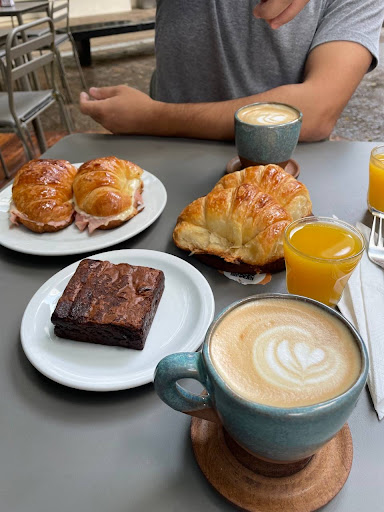 Vamos por partes: tiene espacio de interior y exterior para estar, adentro bastante calor, afuera ameno, lástima que se te ponen a fumar al lado. Tiene dos asientos al estilo colgante/mecedor que son cómodos. Adentro aceptable la ambientación. Puntos positivos: Las medialunas son de las mejores de la zona, destacan. Son bien hojaldradas. Las tazas son bonitas, el submarino viene en taza más grande. Puntos neutros: Tiene mini cakes, con chocolate y sin dulce de leche solo tenía dos, una de brownie, otra de trufa de chocolate. Son pesadas, van para compartir tranquilamente. Están 9100. No están mal pero no es un sabor único que quizás se espera, es como un alfajor, la parte de abajo es demasiado Diminuta. Es como que le falta algo. Zafa. Puntos NEGATIVOS: Nos dieron un MINI jugo de naranja, cuando les preguntamos por qué a los demás tan grande y a nosotros no, NI LES IMPORTO, UN DESASTRE!!! Te ofrecen un supuesto desayuno con un tostón que de tostón no tiene nada, NO LO PIDAN, NO LO VALE!!! ES UNA MINIATURA LA RODAJA DE PAN QUE TE PONEN, en nuestro caso con huevo y queso, semillas de chía y unos brotes de que se yo que... Una DESILUSIÓN. No volveremos, el trato no lo vale con el reclamo no tenido en cuenta. Muchos aspectos...