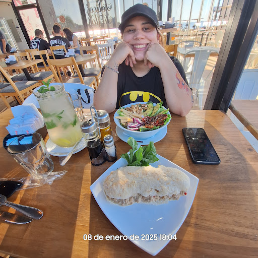 Fuimos a desayunar un día de calor y soleado, lamentablemente el lugar al ser vidriado y pequeño, hay muchos sectores donde da el sol y no podes sentirte del todo a gusto, creo que algún diseñador le erro en eso. Respecto del servicio, si bien el personal es amable, pareciera, o que son nuevos, o bien no están a gustos en su trabajo, porque se los nota muy serios, por un momento no sabia si era una cafetería o una comisaría por lo seria y contractudara de la atención. En este punto sugiero los capaciten bien y les expliquen que la gente va a un lugar así para sentirse cómoda y no pasar nervios, por lo tanto la atención debe ser acorde a eso. Y por último.... se que esta cara la luz, pero si pones un local vidriado en una playa, cuando hace calor no podes pretender poner un aire a 24° y que realmente se sienta el clima como tal, media pila con eso. El desayuno impecable, el proteico es abundante, le pondría una tostada más, ya que con una sola tostada se queda corto con todo lo que trae, y el desayuno de la tostada francesa...