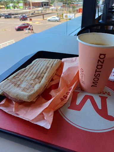 No suelo criticar lugares de comidas porque reconozco el esfuerzo constante que se requiere para mantenerlo en condiciones, pero esta situación me sobrepasó levemente. Aunque la señorita de la caja le puso onda (algo), resulta imposible calificar positivamente mi experiencia. La comida era absolutamente diferente de lo publicitado: el sandwich tostado que pedí ardía como lava ígnea por fuera y helaba como pompóm de pinguino por dentro, además de ser un canapé diminuto y absolutamente insulso. El contenido del mismo aparentaba ser solamente queso, al menos a la vista, porque con los otros sentidos era imposible de percibir. El café "expresso" resultó agua saborizada servida en un vaso de cartón opaco para evitar ver el grado de transparencia del triste líquido. Dije - de pronto - "al menos voy a sentarme al costado del ventanal mientras descanso un rato", pero las moscas tenían otros planes, ofreciéndome un espectáculo de lucha libre (o apareamiento) contra el vidrio, por lo que me levanté parsimoniosamente y tome cualquier camino que me dirigíera fuera de ése tugurio. Sé que la limpieza le corresponde al personal del Hiper, pero la experiencia es conjunta, así que marchen todos presos. Lugar recomendable para quien disfruta de aventuras extremas y salvajes, cargadas de emoción, y sobre todo, caras. El Dibu se debe estar...