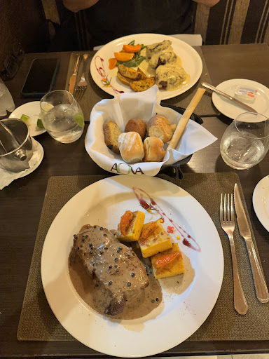Came here for dinner (we made a reservation in advance). The menu had a great variety of local specialties. They started us off with bread and olive oil/balsamic vinegar - my fave was the breadstick. We ordered 2 appetizers: the antipasti of local specialties and the melted cheese. The antipasti of local specialties included cassava, avocado, surubí croquette, reviro, chipa guazu, and sopa paraguaya. This dish was so unique!! My fave was one of the corn pies (it was cheesy) and the croquette. This dish is quite heavy on the starch, so it is very filling. The melted cheese was spectacular. It was piping hot and savory, and I loved the hint of tomato taste. For my entree, I got the tropical surubí. The fish was mostly flaky and tender, and had some nice crispy parts. A few bites were too salty, but it was overall very enjoyable. My bf got the gnocchi with the shrimp sauce. It was solid. For dessert, I got the chocolate specialty dessert, which consisted of white chocolate mousse over a brownie. I didn’t particularly enjoy it. The mousse didn’t have the texture of mousse - it was too gelatin-like. The brownie also wasn’t as fudgy or chocolatey as I like. My bf got the passion fruit mousse, and he loved it. To end the evening, they gave us some limoncello. Overall, I really enjoyed the meal because of the uniqueness of the local dishes. Service was great. Price was also reasonable for the...