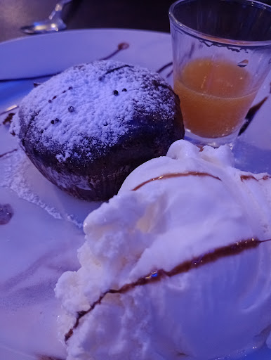 Read moreDatazo: los miércoles hay 50% off para mujeres. Fue una sorpresa cuando nos trajeron la cuenta porque no sabíamos! Entrada: langostinos empanados. El empanado es bastante grueso, por lo que no se aprecia mucho el gusto al langostino. Platos principales: ravioles de rúcula con salsa blanca. El relleno tiene bastante sabor artificial y la salsa blanca está hecha con Maicena. Bife de chorizo al Malbec: Muy buena la carne y las papas, a la salsa Malbec le faltaba reducción porque estaba muy dulce. De postre el volcán de chocolate con helado estaba muy rico y bien lograda la cocción! La atención es muy buena pero demoran un poco. Terminamos pagando $6.800 con el 50% de descuento. Le pongo un 10 a los tragos, pedimos Gin tonic y estaba...