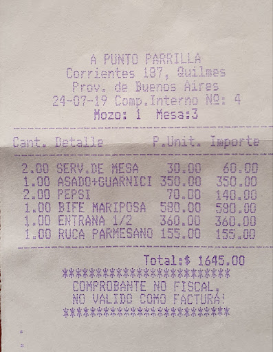 Llegue a esta parrilla por recomendación de un familiar. Ni bien entras te recibe un LCD de grandes proporciones , en un ambiente donde las mesas vestidas con mantel individual de papel y esa impronta de local de comidas de barrio se hacen notar. Me toca ir en invierno y a pesar de tener dos AC, ninguno estaba encendido. Si sumamos que la puerta que da a un sector cerrado por lonas, estaba abierta, da como resultado un clima poco confortable, fresco. Cobran servicio de mesa y este no se corresponde con todo lo que este debe traer, consta de una canasta de panes blancos y un pocillo con alioli. Mal. El bife de chorizo fue para destacar, mariposa y a punto. Son dos bifes normales siameses, comen dos personas moderadas. La ensalada de rúcula, huevo y parmesano es buena. Otro de los comensales ordenó 1/2 entraña, punto negativo acá. La porción entera son dos tiras, sin embargo estas tiras son del ancho de un asado corte banderita que no justifica los $360.(!) Diría que se trataba de 1/4 de porción. Otro de los platos que pedimos fue un menú ejecutivo de asado con fritas. Como todo menú ejecutivo, es justo. No pedir si vas con hambre importante. No es un lugar que se caracteriza por sus bajos precios, dejo también la foto de la cuenta para 3 personas. Si volvería? Por los puntos que detalle mas arriba, no seria mi...