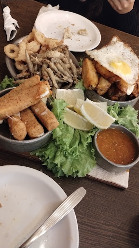 Read moreVa a sonar raro lo que voy a decir: atiendan menos, por favor. Puse 5 estrellas en todo porque no es mi idea bajar la calificación de un lugar que conocí después de recomendación y que sinceramente está muy bien. La comida (picada mar y tierra) es muy rica, muy abundante para una pareja e incluso si suman un niño. Todo se ve fresco, rico, sin exceso de aceite. Y muy económico siendo que se comparte. Pero el problema es el servicio, y no por malo, sino por intenso. Fuimos temprano y había poca gente, quizás fue eso. Pero no es necesario realmente que cada 10 minutos se arrimen a preguntar si todo está bien, si necesitamos algo más o incluso a ofrecer un postre cuando todavía nos quedaba media tabla por comer. Menos chicos, mucho menos. Eso por un lado, y otra recomendación, cuiden un poco el volumen de las cosas que hablan entre ustedes y del griterio entre barra, mozos y cocina. Es espectacular que se lleven bien, pero están laburando y no en el recreo de la secundaria. Super...