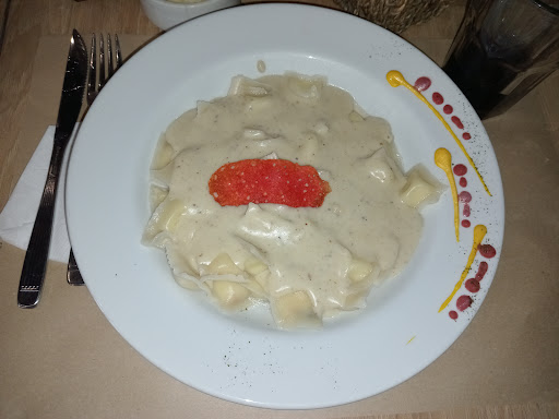 Read moreLa pasta es excelente, con abundante relleno y sabor, el precio creo que es acorde, sinceramente para lo rica que es la pasta me parece un buen precio. Aparte de eso tiene un sector que es para comer en el lugar, sencillo, cálido. La atención fue de primera. Te reciben con una berenjena al escabeche muy bien hecha, bien condimentada y sabrosa, junto con un pan buenísimo. La pasta que pedimos (sorrentinos) super abundante no recuerdo creo que vienen 8, terrible más que en cualquier lado, te dan mucho queso rallado. Fundamental, el tuco con estofado, no era agrio como pasa en cualquier lugar, bien de carne. Lo recomiendo, volveré a...