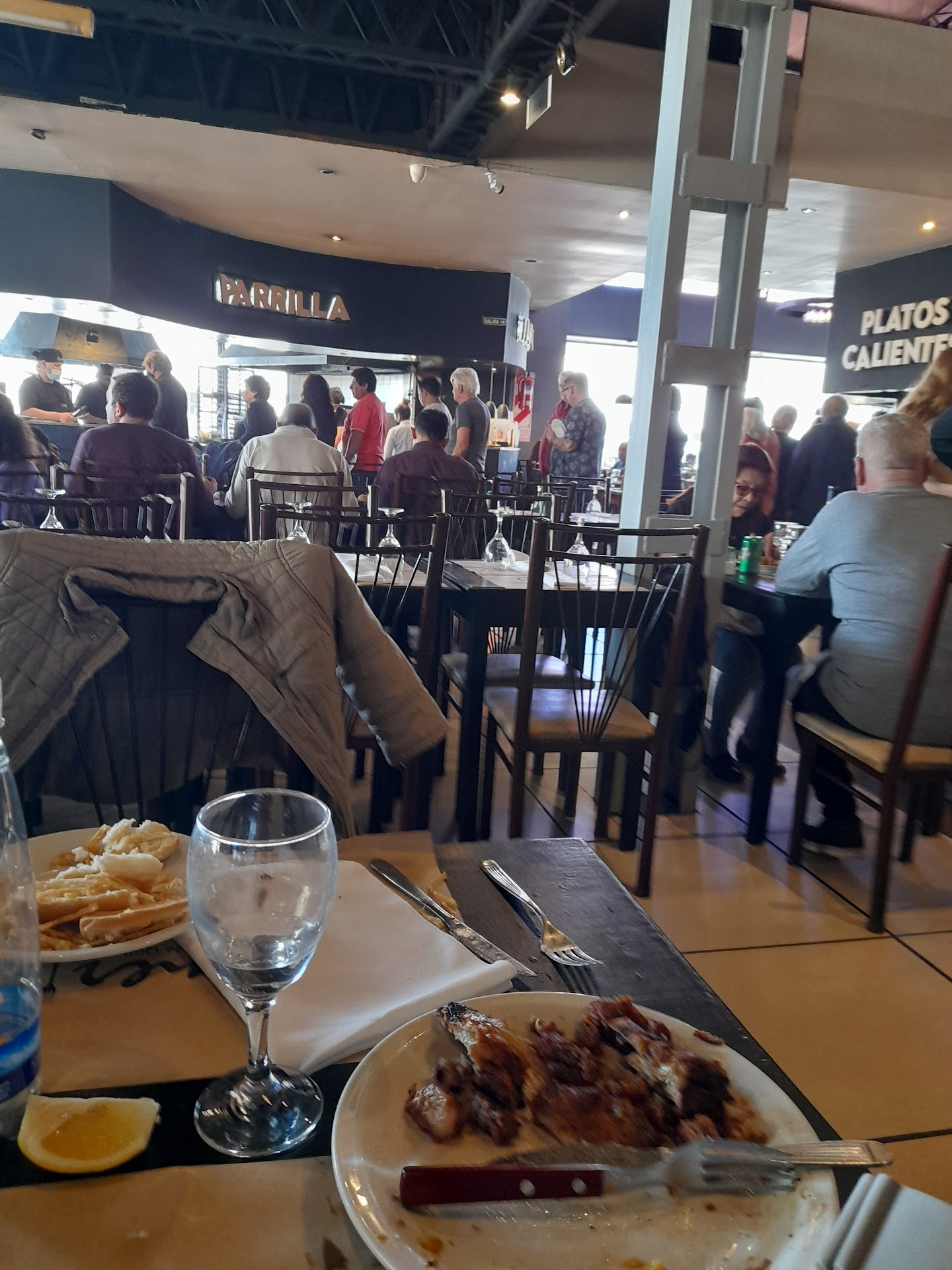 Luego la parrilla tiene lo básico: chorizo, morcillas, achuras, mollejas, costillar, matambre solo o a la pizza y pollo asado. Me quede con ganas de vacío, ojo de bife o bife de chorizo ya que esos cortes no los tenían en la parrilla.