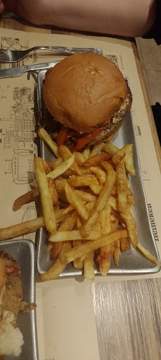 Primero pedimos bastoncitos de muzarella con salsa filetto estaban riquísimos, luego hamburguesas Veggie que tardaron en llegar. La hamburguesa se desarmaba pero estaba rica. Las papas no muy bien, tenían algo medio raro, creo que estaban hechas en aceite hiper usado. El baño limpio y con lo necesario. El ambiente muy ruidoso, imposible mantener una conversación. Las sillas altas muy incómodas y poco inclusivas la verdad. Todo el ambiente está diseñado para que gastes, saques fotos para ig y te vayas rápido a otro lado donde puedas mantener una conversación. Ni bien terminábamos de comer la moza sin decir nada pasaba por nuestra mesa y nos retiraba los platos, incluso aunque hubiera comida en el plato. Quizá solo quería esperar para seguir comiendo. No me gustó, consúltame al menos. Mientras cenábamos nos trajeron la cuenta que no habíamos solicitado. Tal vez queríamos seguir consumiendo pero cuando trajeron el ticket directamente nos estaban diciendo que nos vayamos, así se sintió. Aparentemente había cerrado la cocina pero entiendo que el local no cerraba, es decir no tenían porque cobrarnos en ese momento. Un lugar bastante hostil la verdad, mucha estética pero no brindan una buena atención y mucho menos una buena experiencia...