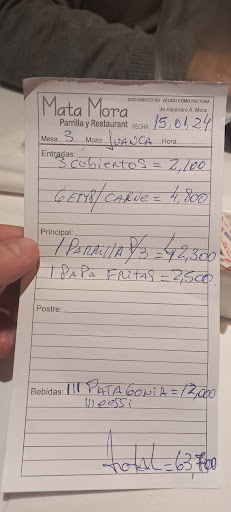 Read moreUn fiasco. Tuvimos 2 experiencias en Matamora, y ambas pésimas. Esperamos más de una hora por una parrillada que llego helada. Pedimos papas y heladas también. El personal si bien tiene buena predisposición en ningún momento nos informo que el tiempo de espera para una parrillada de carne finita era mínimo 1 hora. Mis 3 hijas salieron descompuestas. Y el precio por las nubes. Si bien miramos los precios antes de ingresar, nos quedamos porque supusimos que la comida lo valdría. Pero no. No volvemos nunca más. No lo recomiendo....