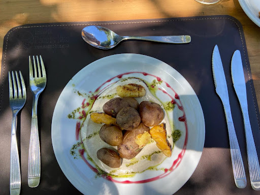 Read moreFue increible! Anteayer fuimos a comer de almuerzo al "Restaurante Peuma Hue". La comida fue exquisita; de entrada comparti con mi marido tubérculos andinos con alioli, de plato principal pedi risotto de cabutia asada, que fue muy rico y mi esposo de plato principal se pidio gírgolas grilladas mientras que mis hijos compartieron una hamburguesa de la huerta con papas y barbacoa de rosa mosqueta, de postre compartimos un cheescake de cajú, que fue muy bueno. Me sorprendió (y alegro) totalmente que la comida sea organica y de la huerta. Siendo vegana y celiaca, me fascinó toda la comida, ya que todas las opciones eran sin gluten y la mayoria eran veganas (también hay opciones de carne y pescado). El servicio fue muy amable y agradable con todos nosotros. El lugar es realmente hermoso, ¡pura naturaleza! Fui con mis dos hijos que les encanto totalmente. ¡Volvería todos los dias! (Una lástima que no viva en Bariloche) Cuando venga de vuelta, me hospedare en el hotel, ¡Me han dicho que es precioso! ¡Gracias...