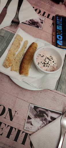 Hice una reserva por Whatsapp con una buena atención, pedí mesa para 6 me dijeron que sería en la vereda. Es muy lindo local en una esquina, la mesa para 6 la armaron con 2 mesas, menos mal que fuimos 5 sino hubiera sido todo más apretado, lo bueno es que tiene una baranda hacía el lado de la calle pero la vereda es angosta y los sentados del lado de la vereda debían moverse para dar paso por momentos a los que pasaban caminando. La atención correcta pero la bebida me preguntó más de una vez, y con anotación y todo fue equivoca aunque ofrecieron cambiarla luego de abierta. Nos trajeron una pa era con 3 panes que no daban ganas de mirarlos, una pequeñísima cazuelita de un dip rosa con unas 4 o 5 tostaditas, eso para 5 personas. Pedimos para compartir mozzarella empanada, eran 3 grandes con una salsa de tomate. Pedimos lasagna, era una porción demasiada pequeña en comparación con los otros platos, dos platos con carne, uno venía con una salsa y el otro no y como no preguntaron el punto de la carne tuvimos que pedir que lo cocinarán más, fetucchini con salsa bolognesa y fetucchini con frutos de mar que eran para mí y le mencioné al camarero que le diga al chef que de los 250 grs que la carta dice que lleva el plato de frutos de mar faltaban unos 200 grs 😬, se llevó mi plato también, y ambos demoraron demasiado en volver, a qué ya habían llegado con un retraso a comparación de los otros 3. Lo que no faltó en mi plato fue cabezas de langostinos, unos calamares durosuy chiclosos, por no decir incomibles sobre una montaña de pasta. Lo único rescatable de los platos salados fue la salsa de tomate 🍅 a Dios gracias 🙏🏽. De postre pedimos el volcán de chocolate, una masa muy rica, unos panqueques de dulce de leche y una degustación de postres, un plato bastante cargado, traía tiramisú realmente exquisito, panqueques de dulce de leche, brownie muy rico con frutos rojos, un crumble de manzana, no me gustó para mí era incomibles porque estaba la masa cruda, una bocha de crema y creo que nada más. Pedimos dos cortados y está muy rico el café. En total gastamos $9310, no me dieron ticket factura, mi gran sorpresa fue cuando ví que me cobraron por persona $90 por cubierto, me parece un total afano por la vergüenza que nos trajeron, yo en la carta a la cual se accede con código QR no leí que dijera que cobran cubierto. Entre para ir al baño, subí al primer piso, muy lindo tiene una mesa como para 6 personas que sola estaba esa muy buena porque queda más privado y Vi también la terraza que tienen, los baños estaban sucios y solo...