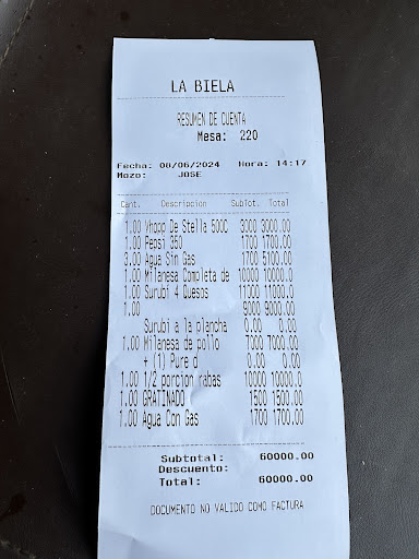 Read moreHemos ido muchas veces a comer a la biela porque era un lugar donde se comía bien, la atención era buena y el ambiente era agradable. El mozo estaba atento que uno iba con niños pequeños. Pero lo de ayer fue una experiencia inolvidable. Al llegar consultamos por un par de dudas de los platos, pedimos un risotto de champignones, un wok de carne y lomo ala mostaza. El pedido se hizo 21.10, siendo las 22.10 no noticias de los platos, ni siquiera nadie que se acerque a decirnos algo. Voy a consultar a la caja, recién ahí se dieron cuenta de la demora, porque la cocina, porque el mozo, porque el tiempo, porque el reloj etc etc etc. pero de la comida ni noticias. A las 22.30 aparecen los platos, uno de ellos trajeron mal, risotto de mariscos en vez de champiñones. El wok de carné reducido en vino con salsa de soja, no estaba bien hecha la reducción tenía un gusto a vinagre detestable realmente incomible. Me cambiaron antes de los 5 minutos el risotto por el correcto. 22.40 recién me senté a...