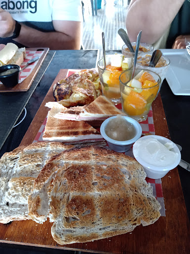 👍Pros Está bueno para ir a las mesas de afuera especialmente cuando hace lindo día (para los que buscan lugares con aire libre). Estaba todo muy bueno! Las tostadas eran enormes, el tostado estaba bien relleno, el omelette tenia pedazos grandes de queso, el yogurt pensamos que tenía solo copos de maíz pero venía también con crocante, nueces y pasas (rica!), la ensalada tenía frutas variadas y los exprimidos eran naturales. El wafle estaba rico. Todo llegó caliente, las infusiones también. Nos parecieron re copadas las opciones de brunch además de super abundantes y a buen precio.