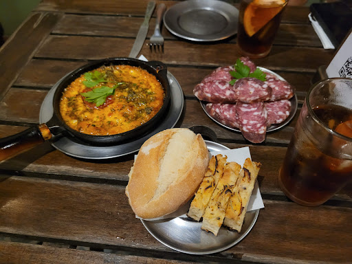 -Es un bar tipo bodegón con tapas, picadas de fiambres,pizzas por porcion y sandwiches de miga o de otros panes. Tienen fuentes para compartir de lasagna, canalones, pastel de carne y milanes, pero no están todos los días, son días determinados (no recuerdo si dijo martes,miércoles y jueves, algo asi). -Estaba todo muy bueno. Hipertensos abstenerse jajaj todo bastante condimentado y con mucho aceite... pero riquísimo. La suprema súper tierna, con bastante queso. Venía acompañada de 3 guarniciones chiquitas (puré, ensalada de zanahoria y huevo, y escabeche de verduras). La pizza espectacular, una de las mejores que probé de tipo molde en rosario, bien esponjosa , con banda de queso, lo que sí un poco salada la masa, pero igualmente riquísima (me hizo acordar a la masa de Guerrin en BsAs). Muy buena la atención, se nota que les importa el cliente. Todo el tiempo controlaron que estuviéramos satisfechos con el servicio. Teníamos una reserva, llegamos unos minutos tarde y no hubo problema. Era jueves pero feriado, quisimos pedir la bandeja para compartir y ese día no la hacían, pero hicieron una excepcion, lo valoramos mucho. Cuando subimos la historia al insta, también consultaron como la habíamos pasado, buen detalle. El lugar por afuera pasa desapercibido. Entras por el pasillo tipo garage apedrado, con mesitas. No es muy grande. Adentro se nota que remodelaron el ambiente, muy lindo. Tema vajilla te dan platitos mini tipo de taza de té (porque es todo tapas) pero jajaj es medio incómodo, un tamaño de postre sería mejor. Se especializan en Vermut, tienen su propia cava y una lista inmensa de aperitivos y tragos. Tema precio es bastante salado, especialmente...