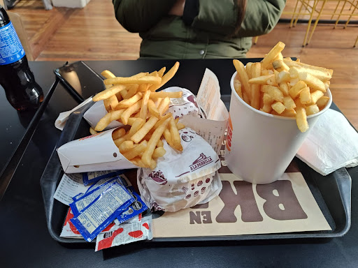 Bien... Un típico lugar de comida rápida (fast food) que destaca por el incomparable sabor de su carne tipo parrilla. De verdad es notoria la diferencia con su gran rival MC. Aunque las papas fritas no están a la altura. No son malas pero las hay mejores. Respecto a la cantidad/precio, las bebidas son grandes, el sandwich correcto acorde al precio. El lugar en sí, como espacio, es grande, cuenta con 2 pisos (PB y PA) baños y un aspecto de vieja casona que a muchos puede resultarles agradable y a algunos bastante desagradable. Un poco raro ya que la estética es un detalle muy cuidado en este tipo de franquicias. La atención es apenas más lenta que la de su rival, pero creo que eso es por establecer una mejor comprensión del pedido tomado, ya que al ser más lento, se entiende mejor. En líneas generales, es un buen lugar con un costo correcto y con un inigualable sabor en sus carnes. Muy recomendado para ir en familia a comer a cualquier hora del día. El lugar es bastante limpio en lo que cabe, dado que con la gran cantidad de gente transportando sus bandejas, es muy común los derrames. Pero el personal siempre atento a lograr mantener el orden y limpieza. Muy bueno el puesto de candy con lindas variantes a la hora de elegir un postre rápido...