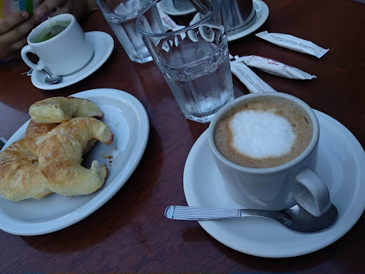 Read moreBuena atención, en el lugar destacan las medialunas saladas riquísimas, la moza no nos trajo servilletas pero se las pedi al bachero muy buena onda me dio las servilletas que necesitará, el cafe con leche a medio pelo, mi novia pidio un mate cocido y le puse un poco más de leche a mi cafe porque estaba muy aguaso, con respecto al precio nos cobro un cafe con leche y 2 medialunas y un matecocido con 2 medialunas todo $500 (podria agregar 3 medialunas xq las que te dan son bastantes chiquitas). Pd: el cafe con leche que me dieron vino con granitos de cafe (medio mal hecho y...