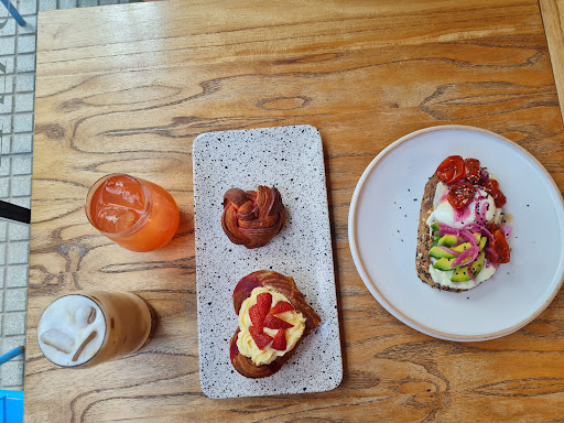 Read moreFuimos a merendar el día de San Valentin. Pedimos dos piezas de bollería especiales por ese día. Una de ellas, en forma de corazón, muy rica, pero la otra, en forma de rosa, era de frambuesa y pimienta. Lamentablemente solo sabía a pimienta, lo cuál no fue nada agradable, no la pudimos terminar porque genuinamente no nos pareció rica. Además, cambiaron el avocado toast, a nuestro parecer antes era más rico, la palta estaba pisada, preparada como una pasta, y ahora está presentada en rodajas. No estamos seguros de si la cantidad de queso crema presente en el avocado toast disminuyó o no. Al inicio te ofrecían el avocado toast con dos tostadas, y ahora la 2nda la cobran aparte, en una versión XL. La frutillada, que era su mejor bebida fuera de lo que es cafetería, no aparece más en el menú, y otras bebidas que podrían ser ricas, como los frappés, solo los ofrecen en la sucursal del Alto Rosario. En otra ocasión pedí el cubo de pistacho, que me pareció soso ya que tenia muchísima crema, y la misma no era ni dulce ni salada, no sabía a nada. Antes disfrutábamos mucho ir, el avocado toast y la frutillada eran inmejorables, e íbamos seguido, pero por ahora no creemos que vayamos a volver. También cuando se llena, el ambiente es algo ruidoso, aunque menos que cuando inauguraron el local. No quiero malentendidos, el local tiene productos ricos y el café está muy bien, pero ya no sentimos que sea un lugar destacable por...