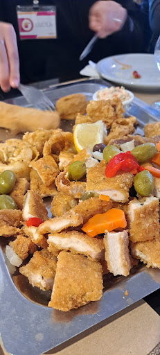 14/09/2024 Llegamos a las 21.15. El lugar estaba semi lleno en ese momento No había la tabla que quisimos comer. Pedimos una de rebozados y una tortilla. Está última llegó quemada a los 20' (a las 21.25 ya habíamos hecho el pedido) Siendo las 22.30 de la tabla de rebozados, ni noticias. Le preguntamos al mozo quien nos gritó que él no era de la cocina (un grosero) Finalmente alrededor de las 22.45 llegó la mentada tabla. Incomible: rabas frías y babosas, bastones de mozzarella fríos adentro (evidentemente congelados) que eran un bodoque de queso. Un horror. El ruido ambiente cuando el local se llenó, insoportable. No vuelvo. Y es una pena porque se comía...
