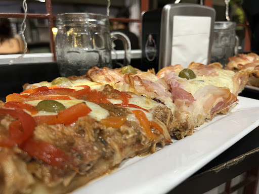 Read moreLas pizzas y las empanadas son buenas. Hay varias opciones de pizza fugazza, lo cual no es común en todas las pizzerías. Hay algunas opciones al corte. No ofrecen agua ni soda. El ambiente es común, chico, no hay mesas, es para comer en la barra, pero bien. Es un estilo de pizzería porteña. Hay dos locales, uno en pleno centro y otro en barrio echesortu. Es en realidad una pizzería para llevar las pizzas y le agregaron la opción de comer en barra. Estimo que a eso se debe que no hay agua ni soda. Las pizzas te las sirven en un plato chico, todo junto, medio incómodo. Los precios note que no son baratos. 4 porciones de pizza y 5 empanadas y dos latas de cerveza, 25 mil pesos. Si pagas con débito o crédito te hacen un recargo del 5 por ciento, si pagas con transferencia es el mismo precio...