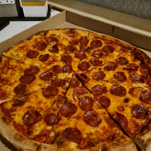 No es un sitio que te invite a sentarte y disfrutar de una pizza, si no que todo lo contrario.. Es como un pizza al paso compras una porción y andate. Podes sentarte pero no te ofrecen platos ni cubiertos. Nadie te atiende más que en el mostrador, la gaseosa o cerveza agarrala vos. Los precios están bien y los medios de pago que ofrece son buenos La pizza es grande y es Rica no es muuuy buena pero es buena.. muy seca a mi gusto personal, tiene muy poco queso.. Al hacerla de Pepperoni es toda Roja (salsa y pepperoni.. Poco queso). Dejan Aji molido, sal y Orégano en la mesa.. Estilo NEW YORK... pero si van a hacer estilo NEW YORK.. Pongan un aceite macerado con dos aceitunas aunque sea así no se come la pizza tan seca y da la elección al cliente a que coma más satisfecho. Fui a este sitio por recomendación de la página punto biz.. Pero no es un sitio donde uno pueda sentarse como en La vendeta, Los inmortales, Santa María o...