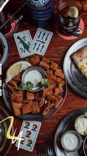 Es un pequeño bar muy concurrido por los vecinos del barrio, tiene cierta mística que hace que sea muy atractivo para el público jóven. La carta es muy breve pero efectiva, de la cual recomiendo su hamburguesa, si buscas un amplio menú con mil variedades este no es tu lugar, este bar es para una salida entre amigos o cita tranquila. Brindan cerveza tirada, sidra artesanal y una buena variedad de tragos que son la especialidad de la casa. El ambiente está decorado con una onda vintage industrial, el espacio es pequeño, hay mesas adentro y afuera en la calle, también barras largas para compartir con extraños. Ofrecen mantas para los que tengan frío en el exterior. Recomiendo el bar como un lugar para juntadas, tomar unas copas brevemente en mitad de semana, o alguna onda así, si querés nivel vas a tener que ir a otro lugar. Esto es bonito, barato y buena onda.