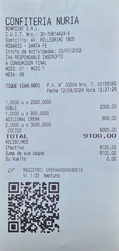 Read moreHoy fuimos con mi mamá a las 10hs de la mañana a desayunar a Nuria de calle Pellegrini (vivimos Por dicha calle ,somos vecinos)y realmente jamas volveria a ir ,tuvimos un trato horrible y no por las mozas,si no por la persona que estaba en la caja. Entramos, nos pusimos alcohol y empezamos a escuchar unos gritos terrible (desde la caja) diciendo : Afuera!!!!! Afueraaa!!! salgan de aca! nos miramos con otro cliente hombre y no entendiamos si era a nosotros y como todo el bar nos miraba ,nos dimos cuenta que si. Esa mujer seguia gritando sin nada de amabilidad ,al contrario ,y nos dijo que nos fueramos y esperabamos a ser atendidos ,"afuera ",la maxima de hoy fue de 7 grados. Nos tocó entrar ,la moza con mucha verguenza,nos llama y nos atiende con amabilidad y nos explico que era por protocolo que no se podia entrar,no hubiera sido distinto si esa mujer hubiera hablado como una persona educada,amable y no a los gritos y como si le hubieramos entrado a robar? JAMAS VOLVEREMOS Y soy de ir a desayuanr siempre a los mejores bares,jamas recomedaria a mis...