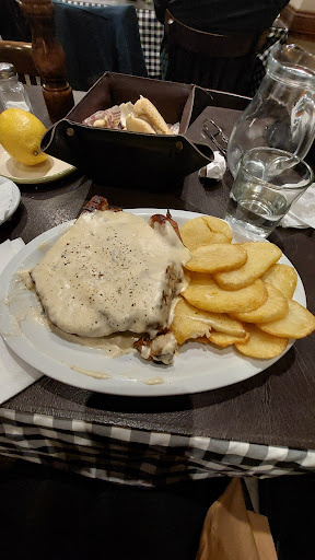 Read moreEl lugar es hermoso. Nos safa cuando salimos del teatro el Círculo. Es tipo bodegón. La atención es bastante rápida. Pero cuando vas de noche solo toman reservas hasta las 21h por lo que tenemos que esperar después de las 22h una demora de 30 a 40min. No hay tanta opción en el menú. En mi caso fui dos veces y no fallaron. En cuanto al servicio de mesa, faltaría un cuchillo espatulador para la manteca, me gusta la canasta del pan calentito y las tostadas bien hechas y condimentadas pero vienen pocas, sólo 4. Te dan agua de la canilla en una jarra. 1era ocasión pedimos de entrada provoleta un 10. De comer bondiola de cerdo con puré de zapallo un 9. A la carne le faltaba sabor. El puré excelente. El otro plato Entrecot la farola con papas hervidas un 9. La carne excelente con pimientos asados, cebolla caramelizada, hongos. Pero la guarnición de papas hervidas sin sabor... (se puede elegir otras opciones). 2da ocasión pedimos de entrada empanadas 1 de carne y la otra de muzza y hongos. Exquisitas!!!! De comer pechuga a la mostaza rellena con espinaca y papas fritas en rodajas. Un 8. La pechuga seca, la crema de mostaza muy dura, el plato llegó frío. No me agradó. Le faltaba sabor. Las papas excelentes. El otro plato Matambrito de cerdo con crema de roquefort para 1 persona (la verdad que era gigante y no lo pude terminar!!!) Acompañado de papas frutas en rodajas, un 10!!! Me pareció riquísimo y volvería a repetir. Hasta se puede compartir. No pedimos postre porque siempre estamos llenos. Pero tienen lo básico. Me disgustó que la encargada haya dejado pasar a dos parejas cuando era mi turno... te hacen esperar en un patio techado pero hace frío ahí afuera. La verdad linda experiencia. A las empanadas no les saqué foto, llegaron bien calientes....