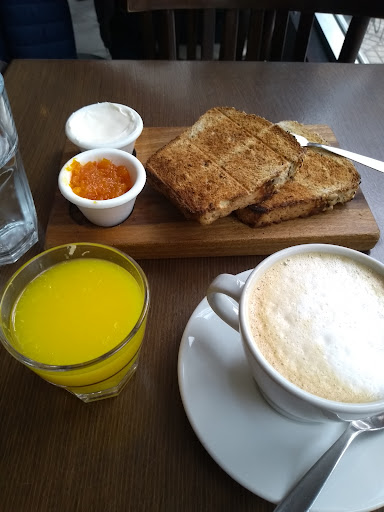 😉Opinión: Nos sorprendió que tenían más opciones de las que imaginábamos, especialmente destacamos que tienen productos descremados para los que se cuidan 😉. Los panes son caseros, de elaboración propia. Las tostadas nos re gustaron, con semillas, buen grosor y llenadoras. Venían acompañadas de abundante queso untable. Las fetas de fiambre eran gruecitas, venían 2 de jamón y 2 de queso. Los huevos estaban bien, para nada secos ni aceitosos. Lo único que nos parecieron un poco caros en relación al resto de la carta. Nos gustó que nos trajeran el pimentero, un detalle que suma. Usan café Segafredo, estaban bien a nuestro criterio. Acompañado de jugo (tipo citrix) y soda. Usan leche descremada 😉.