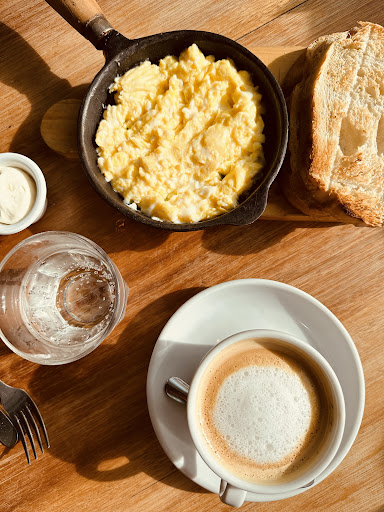 Qué pedimos: Un combo Brouille: tostada + huevos con jamón + infusión. 2 combos muy saludable: tostadas + fruta con semillas + infusión.