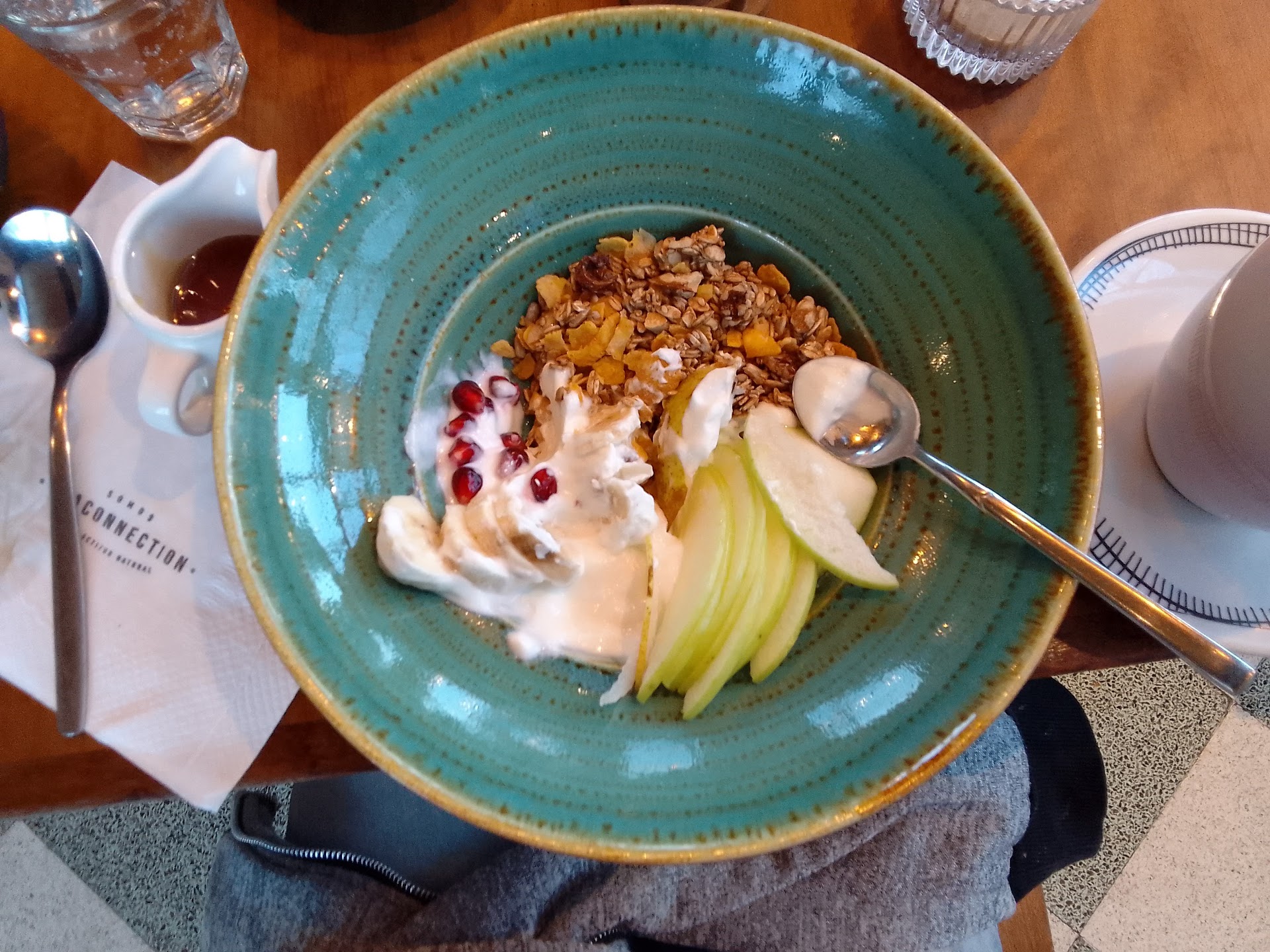 Opinión: El café era muy rico, usan Cabrales. Estaban bien tirados y lo bueno es que de mañana tanto en el brunch como los combos de desayuno tenes refill de infusión (osea el 2do café gratis). Todo era fresco. Las tostadas tenían buen tamaño y grosor. Los huevos estaban bien, no eran aceitosos, nos gusta un poco más cremosos quizás. No habíamos probado nunca la granada, esta bueno la variedad de fruta fresca que trae. -De porción de tirta pedimos una carrot cake, con frosting de chocolate blanco. Muy buena, porción grande y húmeda. El croissant venía prensado y tenía bocha de relleno.