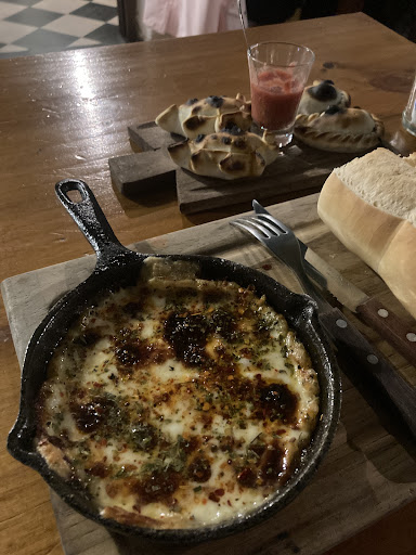 Really really loved this place, such cute atmosphere and the service was just lovely. The empanadas were crazy good. We tried the larger chicken empanada, I think it’s called a Bolivian empanada? It was very tasty and unique. The dough was sweeter. there was broth inside the empanada dough along with the filling, so it was almost like a little of chicken soup inside of an empanada filling? So while it was super tasty, it was slightly awkward to eat. I highly recommend the Provoleta, baked provolone cheese with herbs in an iron skillet. We are completely obsessed with it now. We also had a small bottle of a locally produced lime soda which was super good. We liked it so much. We’re...