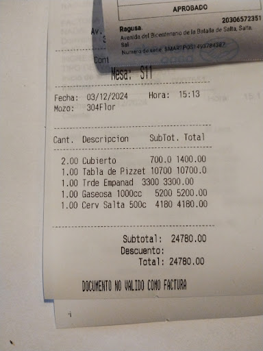 Read moreSiempre voy a comer ahí y tengo buenas experiencias, esta vez decidimos hacer take away y la verdad que no lo recomiendo. Pedimos menú ejecutivo y cuando nos toman el pedido nos hacen agregar gaseosa y el postre, una vez que vamos a pagar nos anotician que en realidad la bebida no estaba incluida ¿? Por qué no hacen elegir entonces que beber si no es parte del menú El pastel de papa que pedimos tenía carne grasosa, se olvidaron de ponernos los postres por lo que luego tuvimos que regresar al local a buscarlos luego de ya haber llegado a casa nosotros. Pedimos si nos podían dar la entrada que ofrecen ellos (pancitos y apio) nos lo cobraron y el...