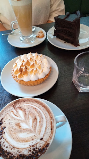 Read moreFuimos hoy y puedo decir que el mocaccino estaba muy bueno, mucho chocolate y con una presentación hermosa. Excelente el lemon pie. Mí amiga y mi hija pidieron una torta de chocolate, no recuerdo el nombre, era una montaña de chocolate riquísimo, la porción es grande. Solo el café para mí gusto, estaba algo frío, pero ya cuando lo sirvieron nos dijeron que si queríamos mad caliente, lo calentaban. Leí en la página de Faustino que la temperatura es más baja para potenciar el gusto. Quiero remarcar la amabilidad y simpatía de la chica que nos atendió y un chico también muy amable. El ambiente es amplio, tranquilo y sillones cómodos. Soy obesa y a veces los sillones con las mesas están muy juntos. Acá no....