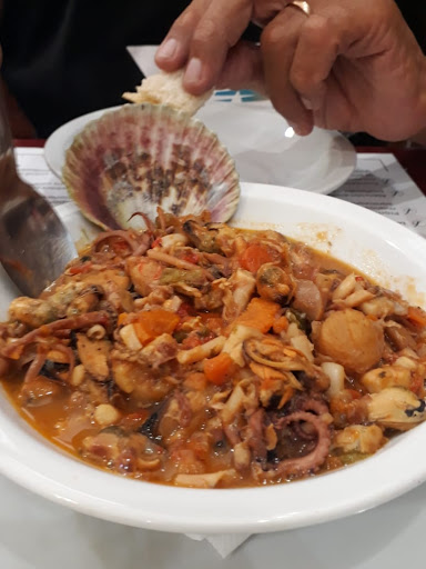 Read moreEstaba lleno de gente, solo 2 mozas atendiendo. Tardaron un rato hasta que tomaron el pedido. Pedimos un Popurrí de Mariscos para compartir, que traía 3 cazuelas frías y 3 calientes. Tardaron 40/50 minutos para traer lo frío, que era servirlo en las cazuelitas simplemente. El pulpo en escabeche estaba duro, los langostinos con salsa golf tenían mucho gusto a puerto. Luego vino la parte caliente, los langostinos empanados tenían gusto a aceite viejo. Para el postre pedimos un flan y una porción de tarta de manzana con bocha de americana. Trajeron la tarta de manzana media congelada y se olvidaron la bocha de helado que tuve que reclamarle a la moza. Luego pedí la cuenta, pasaron 15 minutos y no me la traían. Me levanté y fui a la caja a dar las quejas. Me terminaron cobrando menos por los contratiempos. Pero hubiera preferido comer bien y pagar lo que...