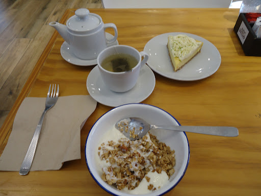 He podido darme el gusto de conocer este lugar que me dejó con muchas ganas de volver y seguir probando la variedad de platos que ofrecen. Si bien no tienen la posibilidad de servir brunch individual, lo cual no estaría nada mal, se lo ve muy tentador aunque no haya un plato salado incluido. La granola con yogurt y banana no sólo está muy bien equilibrada sino que las pasas de uva le dan ese dulzor diferente que acompaña a la banana sutilmente. La key lime pie es deliciosa y el grosor de la masa es perfecto por eso ya quiero volver a probar el lemon pie! Al pedir el té hay una muy buena variedad de gustos para elegir. Sólo tengo para destacar que la cantidad de agua en la tetera alcanza para una taza y no llega a ser suficiente para completar la 2°. Para almorzar algo ligero pedí un sandwich tibio vegetariano de pan integral. Llegó bien calentito, con el queso bien fundido y escapando hacia los costados. Las verduras no estaban para nada quemadas y todas aportaban algo, incluso se encontraban las distintas texturas en cada bocado. Quizá el pan de abajo necesite un poco más de tostado para darle la redondez ideal. El acompañamiento del sandwich fue con una limonada verde, la cual sí debo reconocer la sentí un tanto tímida porque quedó un tanto diluido el jugo de limón. Sería cuestión de ajustar la proporción de líquidos para que la menta no sea la protagonista, y no estaría de más agregar una pizca de jengibre también. El local es amplio, luminoso, cuenta con un patio agradable y en estos tiempos se celebra y agradece el correcto distanciamiento, la higiene permanente y que cada mesa tenga su alcohol en gel. La ambientación y los distintos ámbitos que tiene invitan a quedarse más de lo que se planea y hasta la mesita de la ventana que da a la vereda genera intención de pegar "la ñata contra el vidrio" tal como lo dice el tango. La atención es muy buena, las chicas son muy amables y en lo personal no demoraron en atenderme. Los puntos flojos que encontré y que parecen ser parte de la idiosincracia del partido feudal de San Isidro es la falta de accesibilidad para personas con discapacidad, pero eso se ve en todas las veredas donde se hace casi imposible circule una persona en sillas de ruedas. Del mismo modo, teniendo locales de las principales marcas de bicicletas y siendo la Av. Del Libertador una ciclovía tácita, no se entiende cómo no se aceptan las mismas en estacionamientos o se fomenta la instalación de bicicleteros, al menos en locales gastronómicos y más aún con el crecimiento que hubo de esta movilidad durante la pandemia. Así y todo se agradece mucho la excelente predisposición por permitir dejar la bici en el patio, pero ¿qué pasaría los días en que haya...