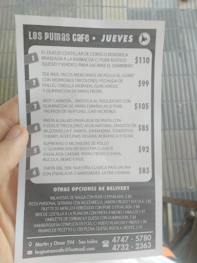 Hoy estaba de paso x S.Isidro y fui a merendar a Los Pumas, ya que me lo super recomendaron. Desilusión total. Pedí tostado con café con leche y le aclaré a la moza por las dudas que no quería tostado con mayonesa, ya que en algunos lugares lo hacen así. ESPANTOSA la mayonesa caliente. Me aclaró que si le ponían mayonesa pero apenas untada me dijo, le pedí con manteca y me dijo que no lo hacían asi, a lo cual accedí a pedirlo igual. Llegó 1ero el tostado y al rato el café, por lo que el tostado se enfrió cuando llego el café. El tostado horrible, casi ni jamón ni queso tenían. Luego pregunté si tenían medialunas para llevar y me dijeron que no. A las 16:30 hs plena hora de merienda y ya no tenían medialunas, no es raro? Sino sugiero la panadería La Reina que la tienen a la vuelta para comprar medialunas cuando no tienen stock. La empleada amorosa, pero era ella sola para atender las mesas, levantar pedidos y traer la comida, me parece que no da abasto con todo. Una pena todo porque el lugar es simple pero lindo y el ambiente es bueno. No sé...