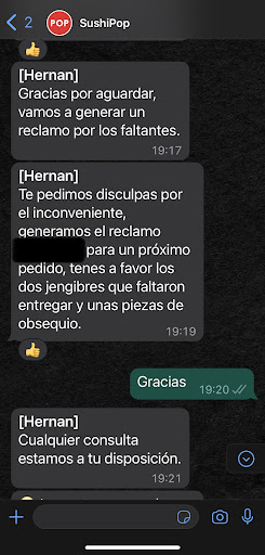 Intenté hacer un reclamo por WhatsApp y la persona que me atendió, Camila, fue completamente irrespetuosa y sin ninguna intención de solucionar nada. Hice el reclamo después de intentar comer (y solo logré consumir la mitad porque estaba realmente feo), pero me respondió de forma fría que no podían hacer nada porque ya lo había consumido. Para colmo, me cerró el reclamo abruptamente mientras yo seguía expresando mi problema.