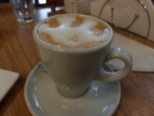 Read moreUn pequeño local, bonito, con servicio de heladeria y cafetería. La atención es buena y la carta tiene varias opciones pero no tantas. El café con leche que viene en porción con la porción de tarta, es pequeño, la tarta es rica, pero no de lo mejor que he probado. El tostado de jamón y queso muy rico, y el pequeño vaso de jugo de naranja que traen para acompañar es intomable, muy feo. Por otro lado mi amigo pidió un jugo de naranja grande, y era de cartón, no jugo exprimido. En la mesa de al lado, había 3 chicas que pidieron el mismo jugo, y lo...