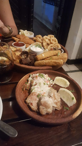 Read moreLindo lugar buena presencia y decoración, lo mejor la banda que tocó. Ahora viene lo peor, mesas y sillas muy chicas, no te puedes sentar relajadamente, dicil caminar sin molestar a alguien, los mozos no parecen trabajar rápido o la cocina demora, y lo peor pedí una tabla individual donde había ensalada de mariscos y langostinos, me trajeron 4 langostinos chicos rebozados con pan rallado tres pedacitos de pescado rebozados también si pesaban 10gr c/u es mucho, ellos decían que era trucha pero la verdad nc si lo era xq como dije eran la mitad de una rodaja de fiambre cortada a máquina y rebozada, también venían unas 10 rabas rebozadas un pocillito hiper hiper pequeño el cual venian unas diez porciones de aletas de calamar del tamaño de un tallo de hoja al igual que la cebolla y el pimiento estaban picadas tan chicas que no se podían pinchar con un escarbadientes y lo peor aún el precio $550.00 una vergüenza un asalto a mano armada más una cerveza Stella negra $250,00. Está bien que hay inflación pero a ésta gente se les fue demasiado la mano. Así lo único que hacen es hacer que un turista no venga más a San Juan o por lo menos...
