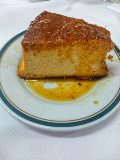 2 comensales 1 bebida grande 1 filet de merluza con guarnicion de pure 1 escalope de lomo al marsala con papas noisette ( estaba fuera de carta ) 1 flan casero 1 budin de pan con crema