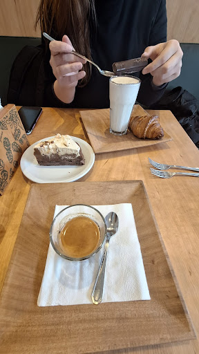 Read moreLo encontramos de casualidad. La decoración de todo el local es una verdadera belleza. Desde las mesas y sillas, hasta como te sirven. Podes comprar para llevar o tomar ahí algo con la pastelería que preparan. La cocina está a la vista. Para nosotros que venimos de la gastronomía también nos gustó mucho ver el esfuerzo de las chicas preparando las cosas y la prolijidad. La pinta de las comidas es divina también y el sabor es igual de bueno. Pedimos una torta marquise con dulce de leche, praliné de almendras y una crema de café. Un poco empalagoso el dulce de leche, pero el sabor balanceado con las cremas encima además de la textura súper agradable al paladar. La croissant... un lujo. Grande y bien hojaldradita, crocante y adentro bastante esponjosa. Para tomar, café bien cargadito (Espresso) y un submarino enorme. Precio muy razonable. Lo único, casi secundario, había solo un chico para atender al público en mostrador y en mesas lo que hacía que fuese un poquito lento pero...