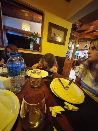 Read moreEl lugar es lindo, cómodo, cuando entramos había una promoción de tallarines a buen precio, y parecía un bodegón. Quisimos pedir 2 menúes infantiles de hamburguesas y nos dijeron que las hamburguesas eran al plato, sin pan, así que tuvimos que pedir dos milanesas napolitana, una de carne y otra de pollo con papas fritas. También pedimos una pizza mediana, de menu infantil, una suprema de pollo al ajillo y unos ñoquis con crema. Las milanesas estaban bien de tamaño, las papas algo escasas, la milanesas de carne estaba incomible, de los nervios y grasa que tenia. La pizza tenía buen tamaño, de espesor a una fetal de fiambre, no fue la gran cosa pero estaba bastante bien. El plato de ñoquis era más parecido a un menú infantil. La suprema de pollo, minúscula, sin acompañamiento, Nos quedamos con hambre, el precio excesivo respecto a otros lugares, por ejemplo, cerca del lago comimos 6 personas por menos dinero, acá fuimos 5, gastamos más, comimos menos y si bien el sabor es rico en general, no fue una buena experiencia. Como ejemplo una truchas con papas noisette, cuesta apenas un poco más que el pollo al ajillo que es más chico y sin acompañamiento, inentendible. Da un poco bronca porque nos cuidamos de no pedir platos exóticos y así y todo fue una decepción. Rescatable una entradita de panes caseros con berenjenas al escabeche que...