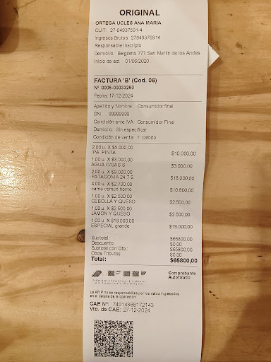 Read moreFuimos el viernes ya que nos lo recomendo el Sr donde alquilamos que las empanadas y cerveza eran muy ricas y tenia razon! todo muy rico!,pero la mala atencion nos hizo levantarnos e irnos, no por la mesera que ella si super amable,estaba el partido Argentina/Uruguay pero mudo ya que tenian musica le pedimos a la mesera si podiamos escuchar el partido y CELESTE que no se si es dueña,encargada o quien le dijo si pero no saques la musica .. (en todo San martin estaban con el partido, de echo entre porque vi que estaba el partido) pense que iban a bajar la musica que dicho sea de paso estaba bastante alta para tener una cena tranquila independientemente del partido. Asique me comi las empanadas y le pedi amablemente la pizza para llevar, mi marido se levanto a pagar y le hizo saber lo de la musica alta a CELESTE que poco le importo alegando que el partido estaba puesto de onda.. Mas alla que a mi pensar si los unicos dos clientes que tenes en el salon te piden de buena manera escuchar el partido QUE TENES PUESTO, no te cuesta nada sacar la musica ,sino la vas a sacar bajala ! Amo el rock pero no tengo porque sentarme a cenar con VIRUS al palo! Una lastima, ahi entendi porque tenian el salon vacio con lo rica que...